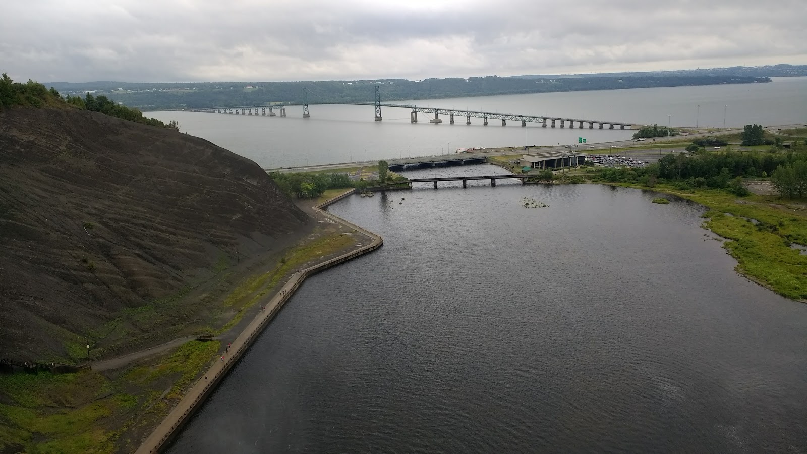 That is the bridge over the St. Lawrence river to Ile d'Orleans.